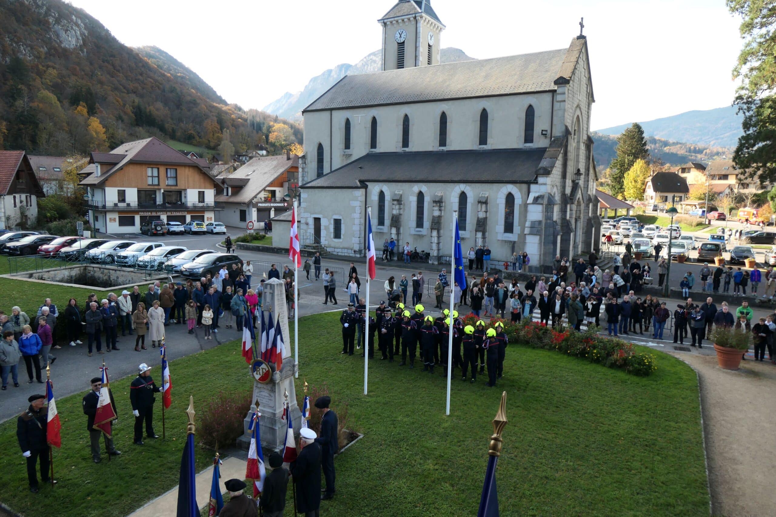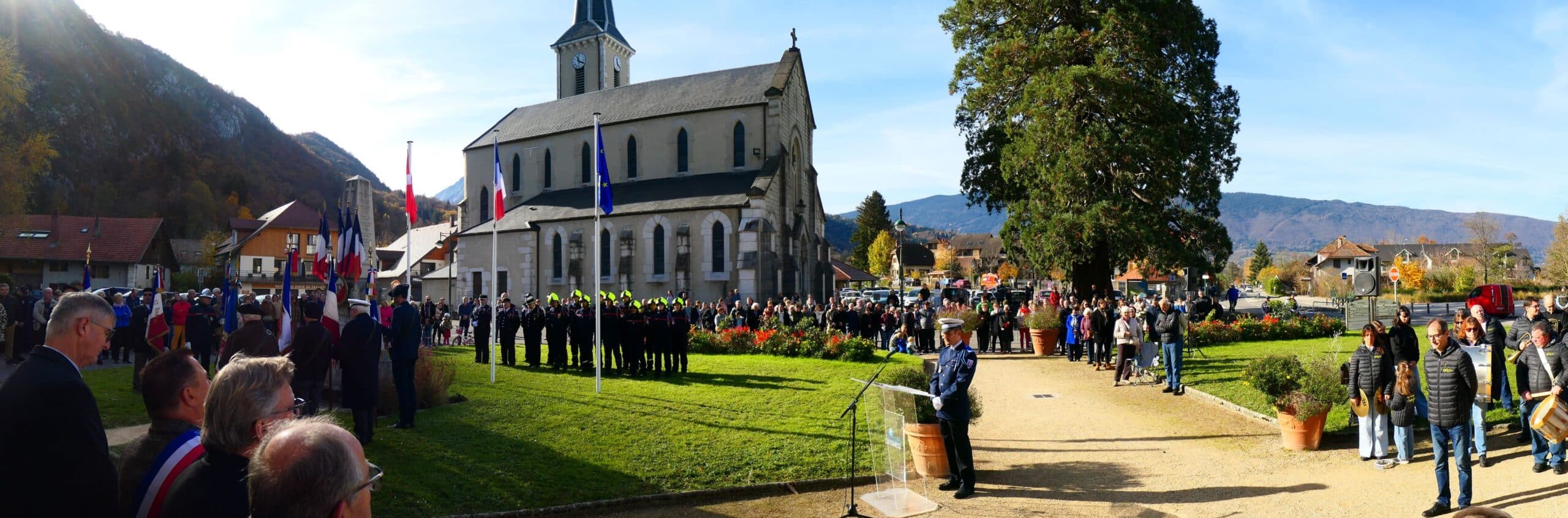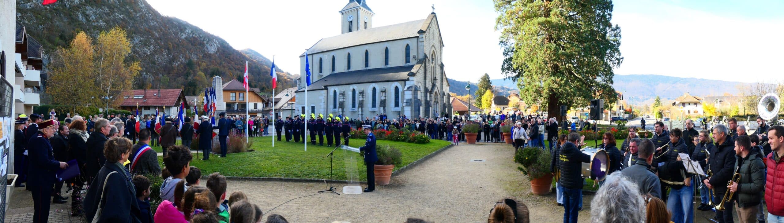 La commémoration intercommunale de l’armistice du 11 novembre s’est déroulée à Duingt en présence des maires des 7 communes de la rive gauche du lac, de Michel Chappet président du Souvenir Français, des porte-drapeaux, des anciens combattants, des parachutistes, de la gendarmerie, du capitaine Hourquet représentant le 27° BCA, des sapeurs-pompiers, de Vivian Maniglier chef de la police municipale de St. Jorioz et maître de la cérémonie, de la Batterie-fanfare et de l’Harmonie municipale de Sevrier, des enfants des écoles et leurs professeures, des représentants des association de Duingt  et d’un public nombreux.