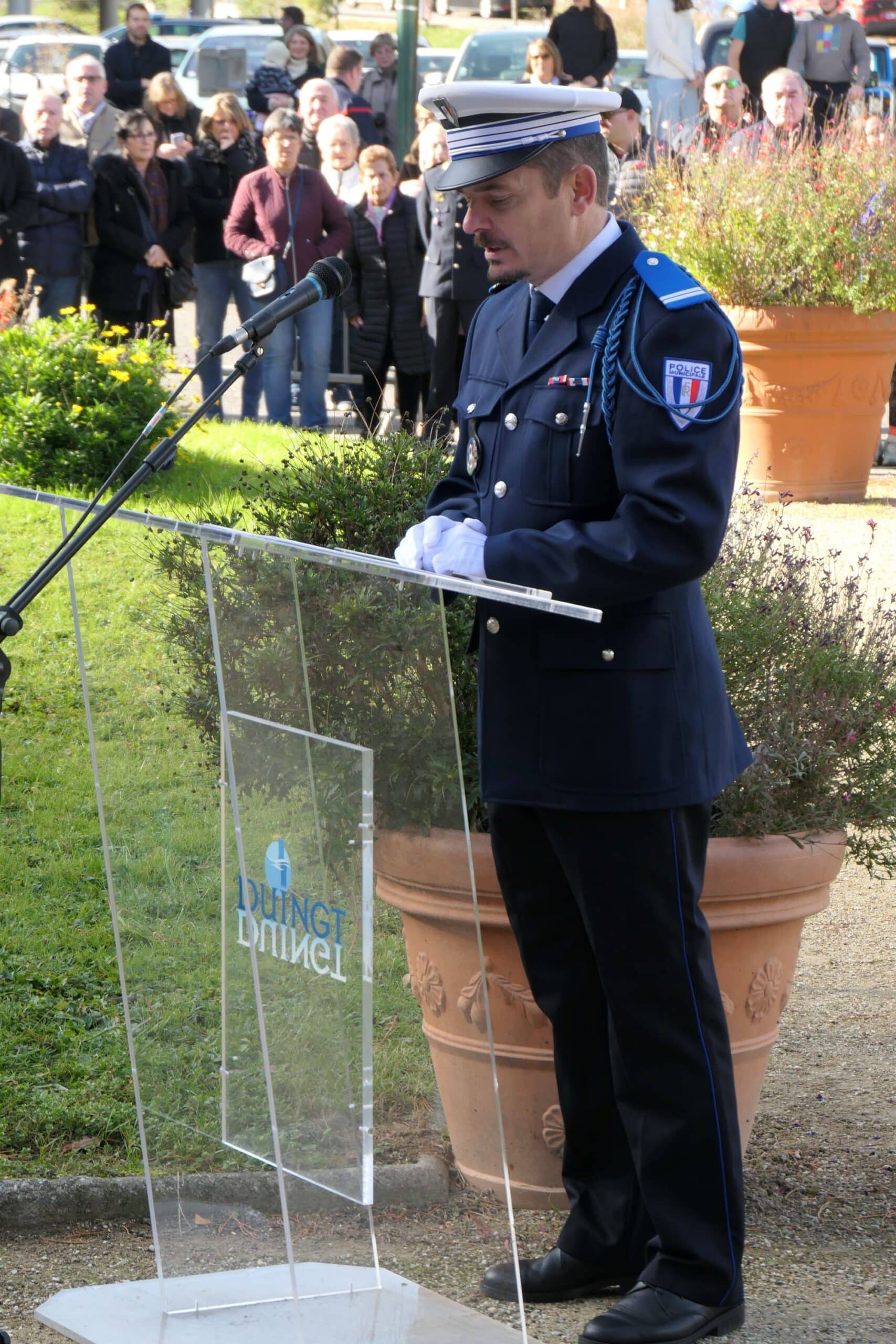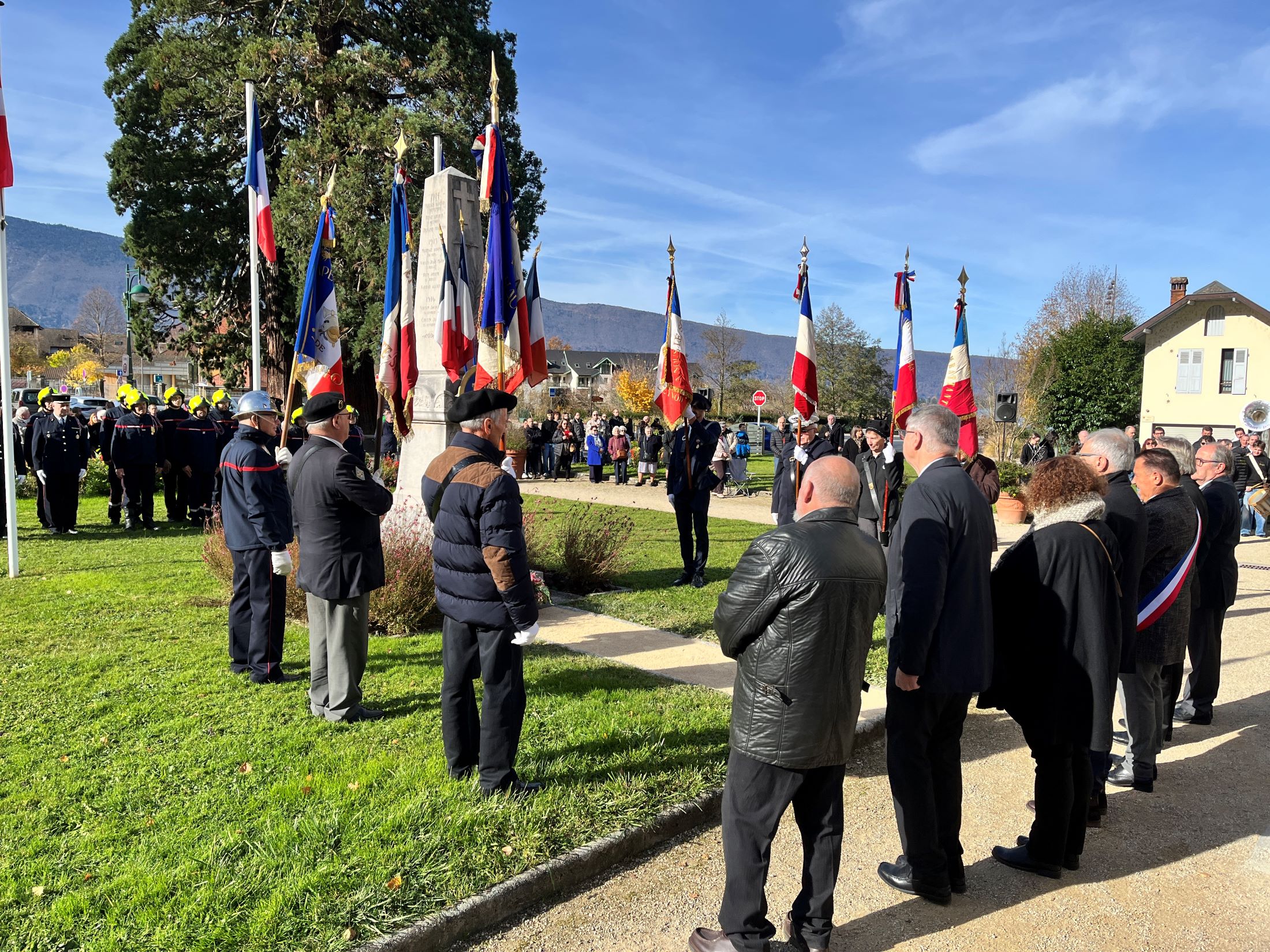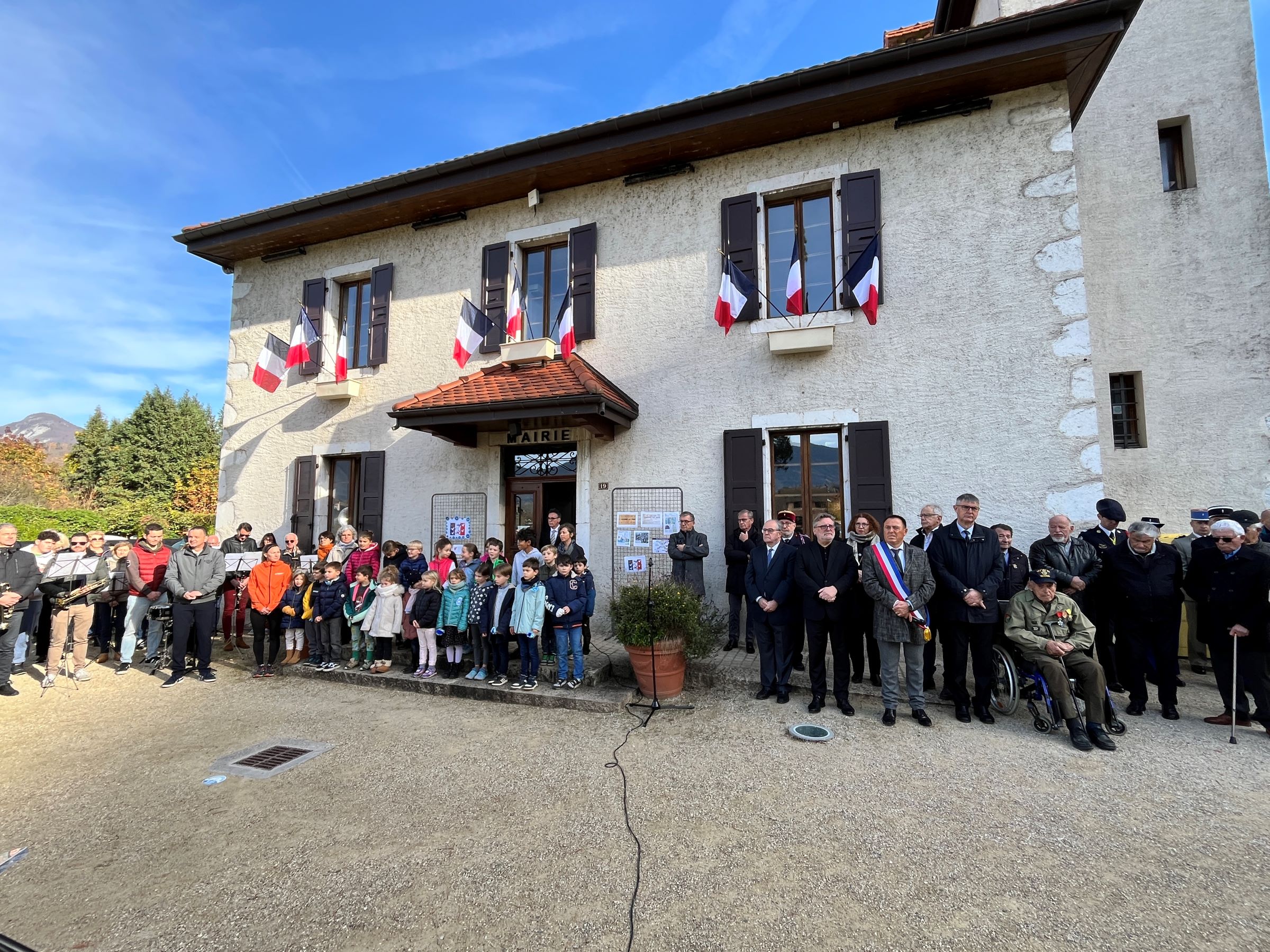 La commémoration intercommunale de l’armistice du 11 novembre s’est déroulée à Duingt en présence des maires des 7 communes de la rive gauche du lac, de Michel Chappet président du Souvenir Français, des porte-drapeaux, des anciens combattants, des parachutistes, de la gendarmerie, du capitaine Hourquet représentant le 27° BCA, des sapeurs-pompiers, de Vivian Maniglier chef de la police municipale de St. Jorioz et maître de la cérémonie, de la Batterie-fanfare et de l’Harmonie municipale de Sevrier, des enfants des écoles et leurs professeures, des représentants des association de Duingt  et d’un public nombreux.