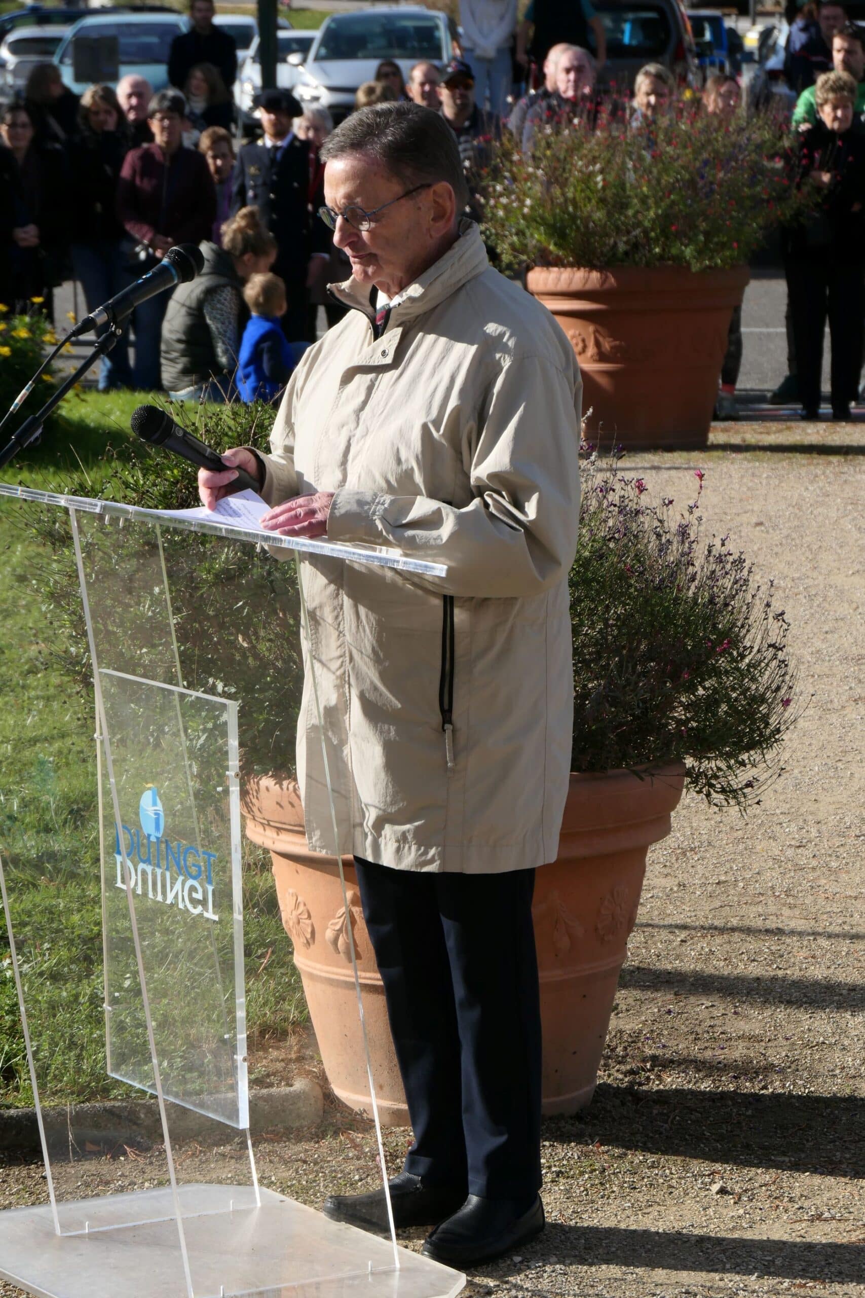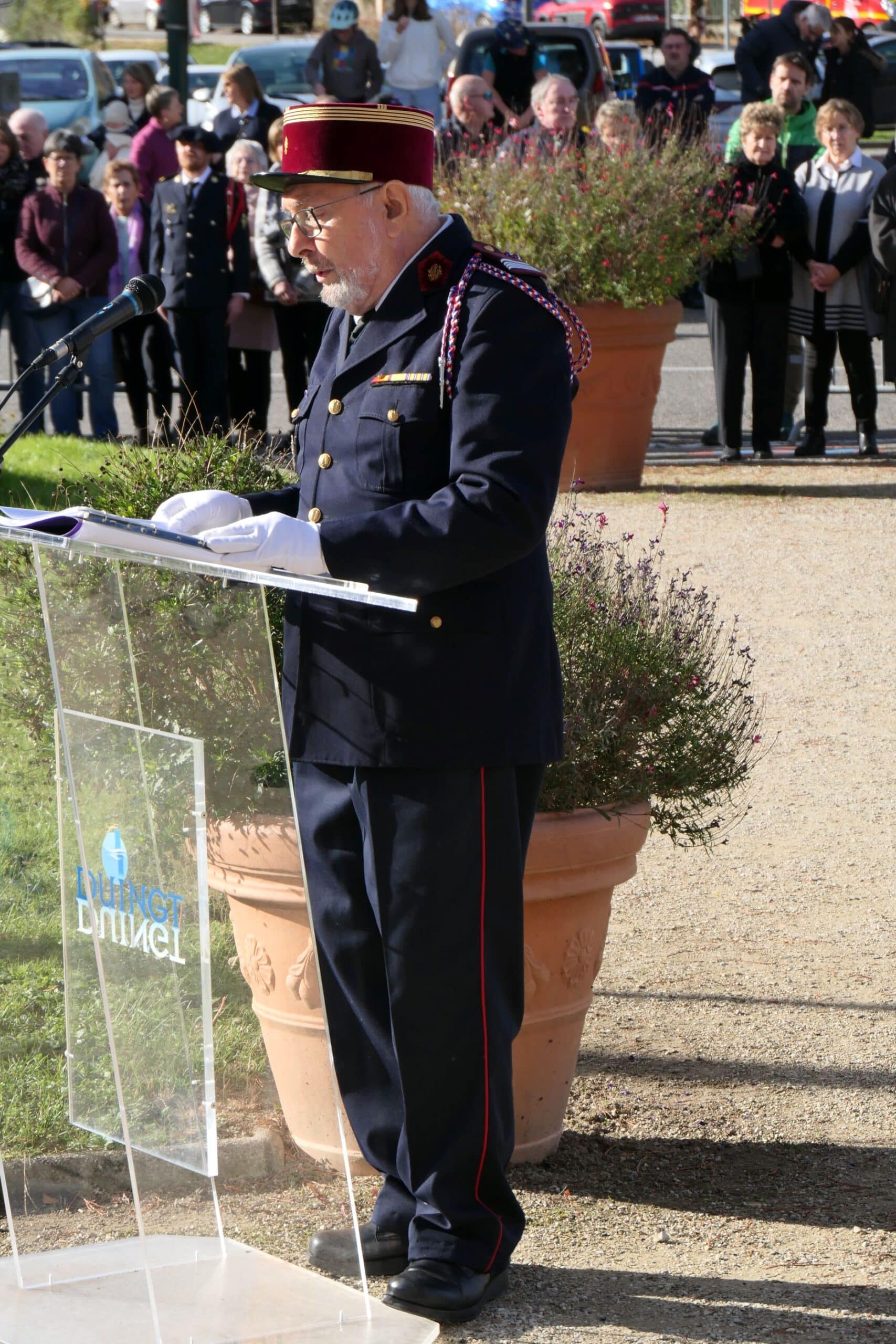 La Marseillaise interprétée par les 2 formations musicales a suivi les dépôts de gerbes de la mairie de Duingt et du Souvenir français. Une minute de silence a précédé les salutations des autorités aux porte-drapeaux, aux sapeurs-pompiers. Les 2 formations musicales ont interprété Les Allobroges et l’Hymne Européen. Le maire a remercié toute l’assistance qu’il a conviée au verre de l’amitié, partagé sous le grenette.