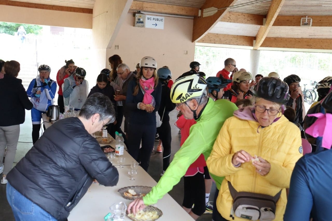 Ce sont près de 130 courageux cyclistes qui ont fait étape sous la Grenette de Duingt pour une collation offerte par les municipalités de Doussard et Duingt; les maires des 2 villages ont assuré ce ravitaillement fort apprécié des participants de tous âges. Tous sont partis rassasiés vers le rendez-vous annécien pour le buffet-dinatoire.