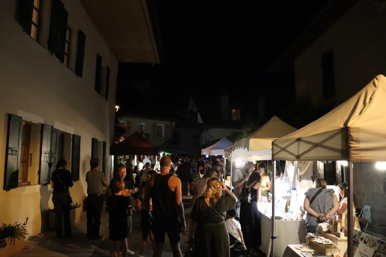 Vendredi 20 juillet, premier marché nocturne de l’été. C’est la commission des marchés de la mairie qui organise cette agréable manifestation et c’est l’association « Les Marmottons » qui tient la buvette et le stand de petite restauration.