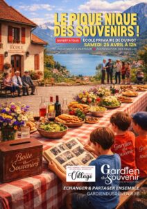 La mairie de Duingt premier village "GARDIEN DU SOUVENIR", en partenariat avec l'école primaire, organise le pique-nique des souvenirs le samedi 25 avril à partir de midi, à l'école primaire du village.