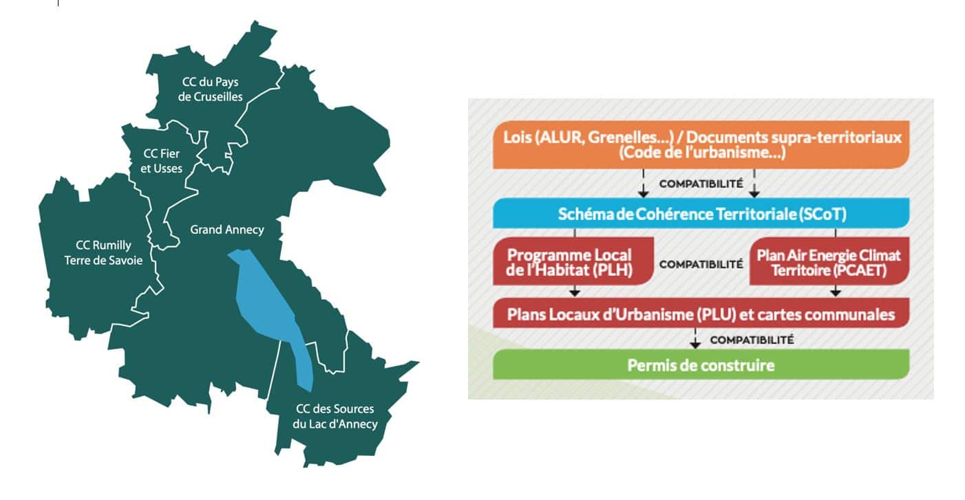 Le périmètre du SCoT du bassin annécien est composé de 5 intercommunalités : Grand Annecy – Fier et Usses – Sources du Lac d’Annecy – Pays de Cruseilles – Rumilly Terre de Savoie pour 78 communes et 298 000 Habitants.